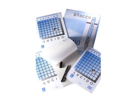 Blocco disegno a carta lucida con superficie satinata per una perfetta definizione del tracciato. Resistente alla grattatura e allo strappo. Blocco da 10 fogli