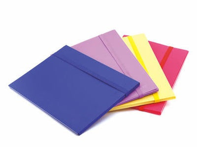 Cartella tre lembi in PP gommato con elastico frontale, formato 34 × 24,5 cm e dorso da 1 cm