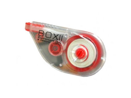 Correttore a nastro con scocca in plastica. Immediatamente riscrivibile. Lunghezza 8 mt.