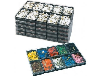 In acciaio con testa colorata o solo bianca. Scatoletta da 50 pz.